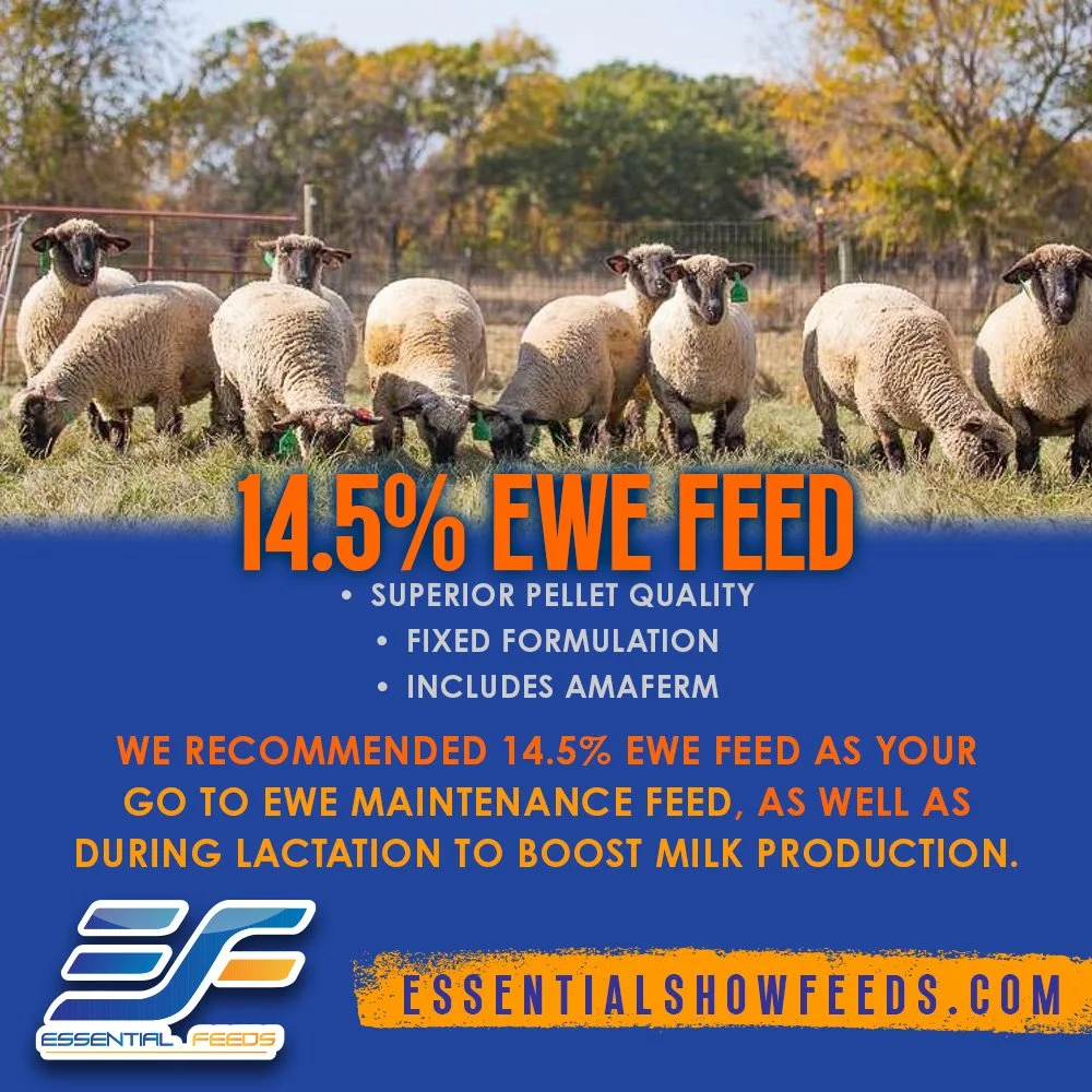 Pelleted complete ewe feed that can be fed at any time during the production calendar to achieve desired outcomes when it comes to basic maintenance, flushing prior to breeding, or to maximize lactation after lambing, when fed at a higher rate.